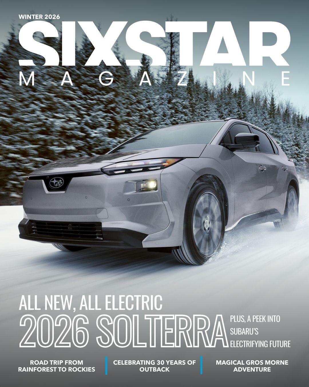 In this issue, we feature Subaru’s exciting, electrified future with the all-new, all-electric 2026 Solterra and sneak peek at Trailseeker and Uncharted—two highly anticipated EV launches coming this Spring. We also celebrate 30 years of Outback with the all-new 2026 Outback and Outback Wilderness.